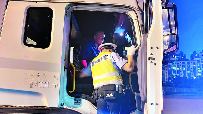“您好,请停一下车,再打印一下车内行车记录仪的行车记录。”每当有大货车驶进上道口,现场交警都会进行拦停检查。21时15分左右,一驾驶员从铜陵方向驾驶至合肥,在道口因疲劳驾驶16分钟被查,被处以200元罚款、记3分的处罚。该驾驶人称,自己其实很清楚疲劳驾驶相关要求,但为了能快点将货物送达目的地,只好不顾劳累继续赶路。