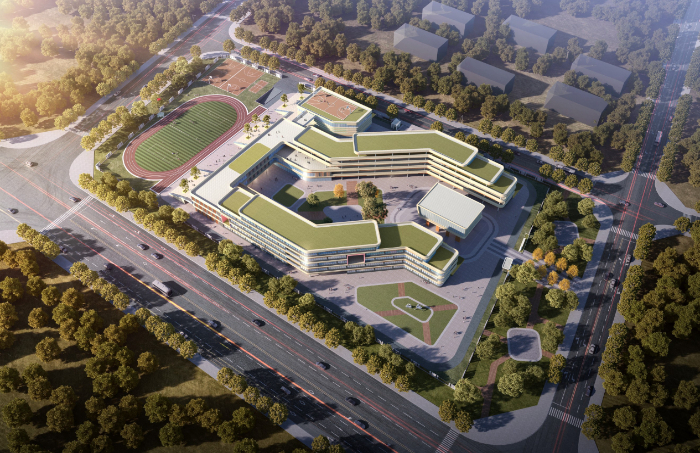 肥西经开区中心学校东校区位于肥西经开区丹霞路与青龙潭路交口东北侧。处于明珠广场商业区腹地,紧临徽园与海洋馆,地理条件优越。项目总用地面积约46亩,总建筑面积约为26825平方米,规划建设规模48个班,可提供学位2160个,项目规划2栋教学楼、1栋多功能报告厅、1栋综合楼(含食堂)及风雨操场、200米运动场、室外篮球羽毛球等运动场地等配套设施。