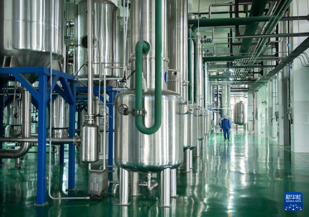 11月10日,在华佗国药股份有限公司的中药智能化提取车间,工作人员查看设备运行情况。