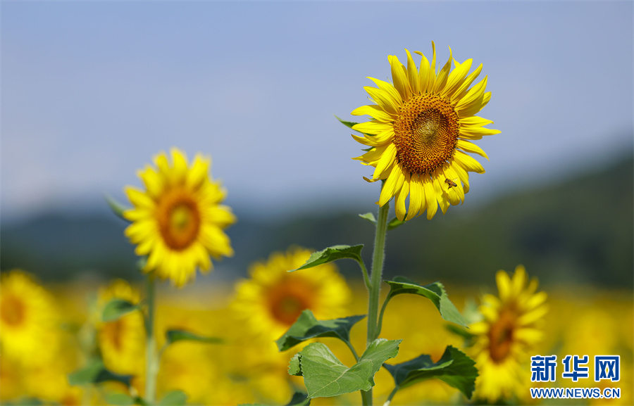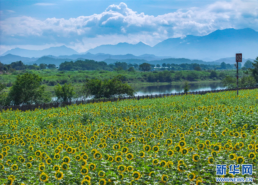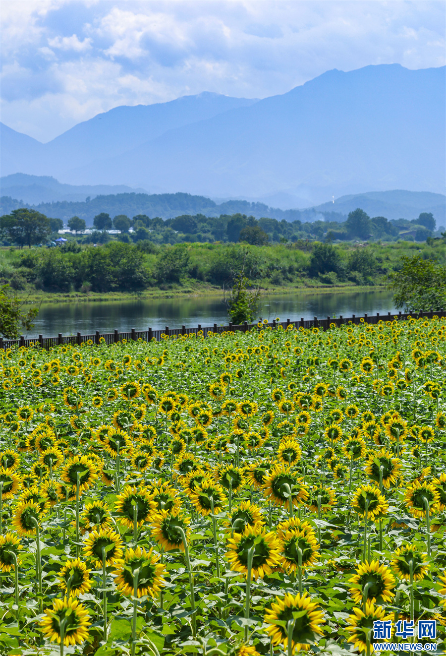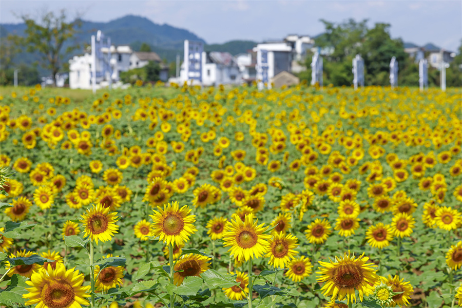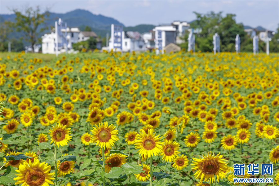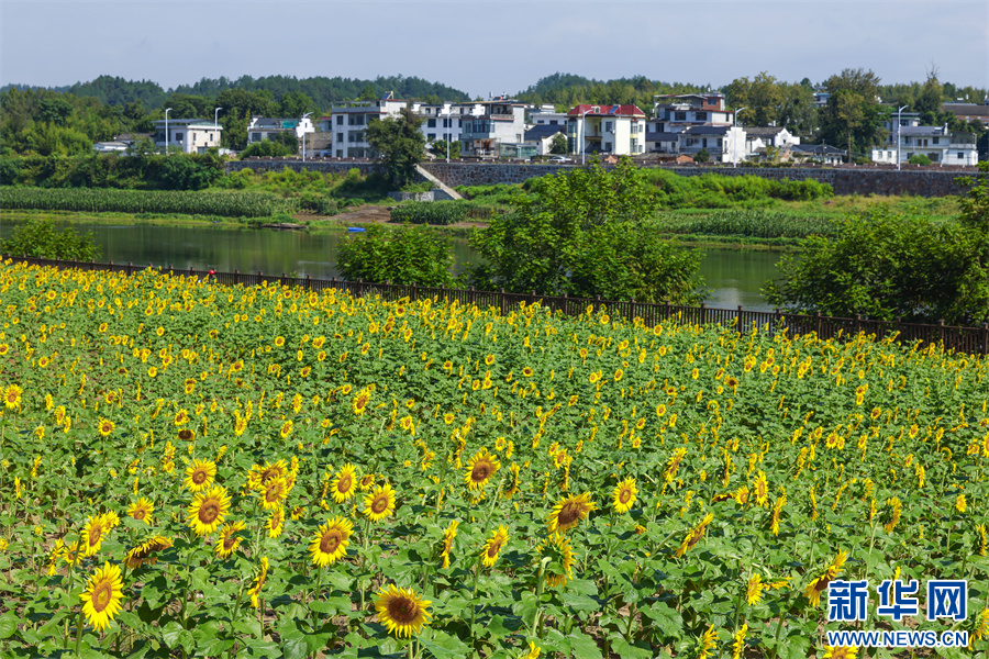 初秋时节,安徽省黄山市屯溪区屯光镇汉沙村的百亩向日葵花渐次绽放,绚丽灿烂,金色的花海扮靓和美乡村。