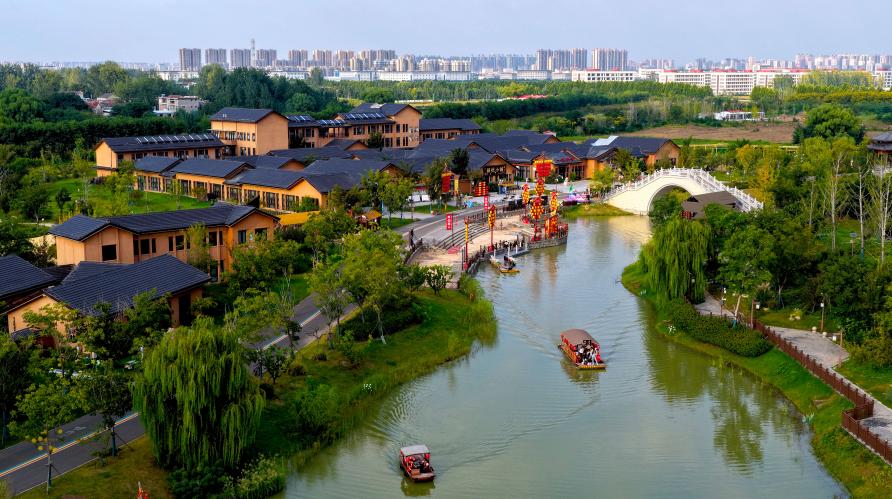 2025年10月5日,游客在安徽省亳州市华佗百草园景区游玩(无人机照片)。新华网发(刘勤利 摄)