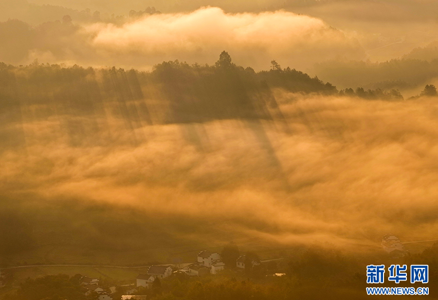 秋日清晨,安徽省黄山市休宁县齐云山云雾缭绕,山峦与田园在飘渺的云纱中若隐若现,宛若一幅浑然天成的水墨画卷。新华网发(施亚磊 摄)