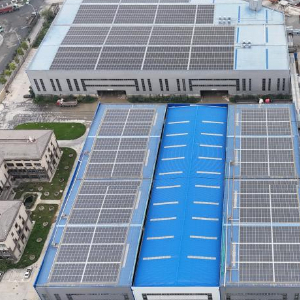 这是台商谢建宝在安徽合肥建设的厂房,厂房屋顶安装了光伏发电系统(10月14日摄)。新华社发