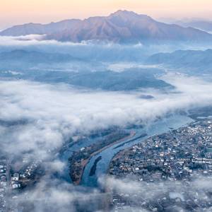 12月14日,在安徽省泾县桃花潭,薄雾如轻纱笼罩江面,远山、桥梁、村落若隐若现,宛如一幅淡雅的水墨画卷。(肖融)