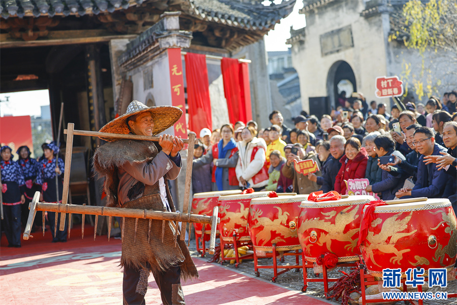 当日,一场充满乡土气息的“村T”秀在安徽省黄山市歙县许村镇许村火热上演。来自全县各乡镇12支队伍近200名村民成为T台主角,他们自编自导自演,通过走秀的形式展示各类农具、农产品和文旅产品,生动演绎日常劳作与乡村生活场景,在喜庆的氛围中共同迎接新年的到来。新华网发(施亚磊 摄)