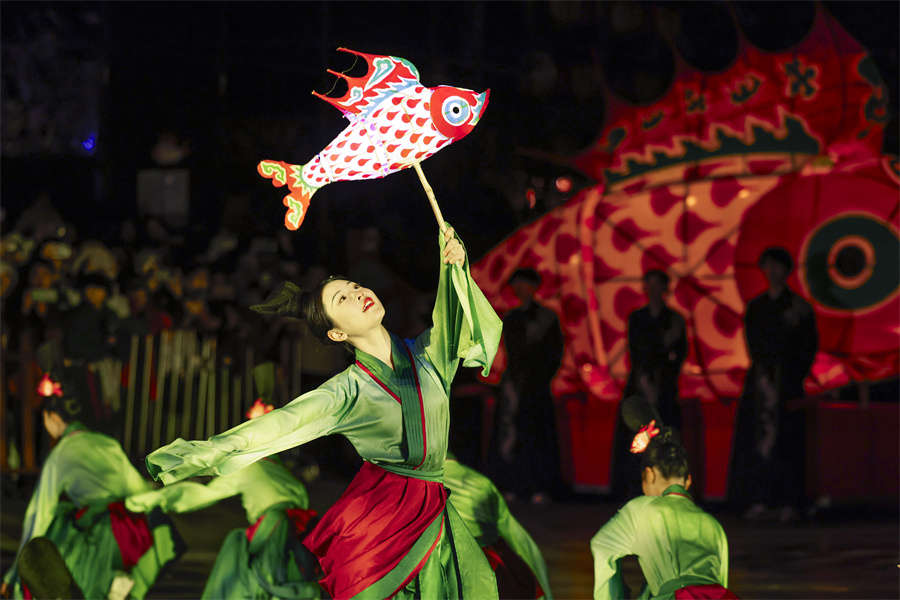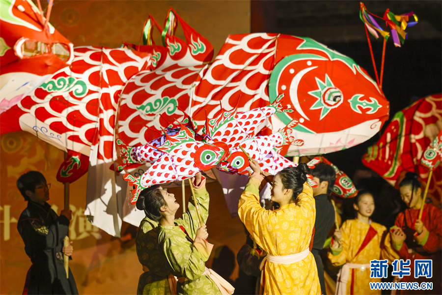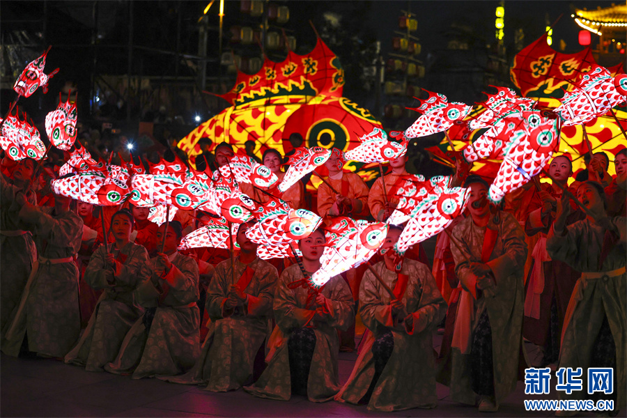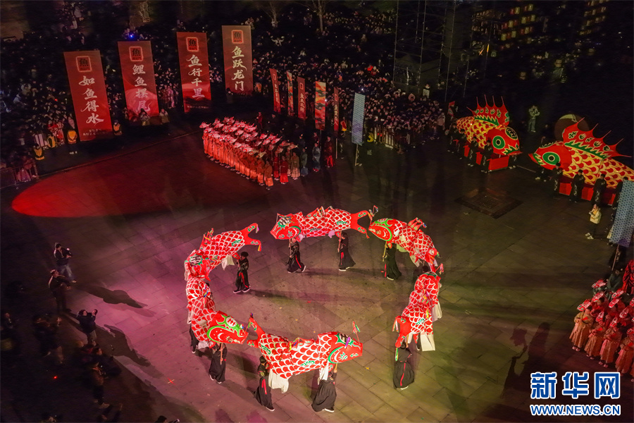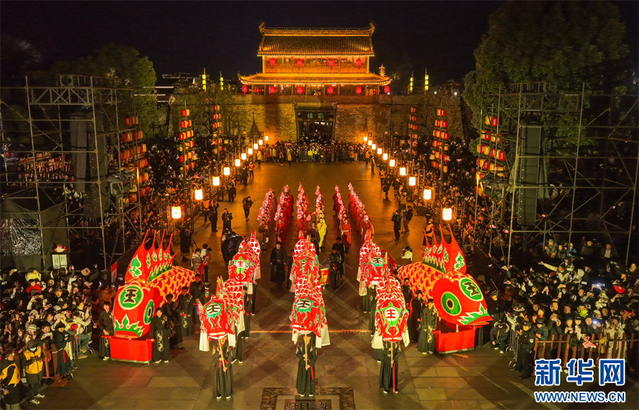 1月1日,演员在安徽省黄山市歙县徽州古城表演鱼灯舞蹈。