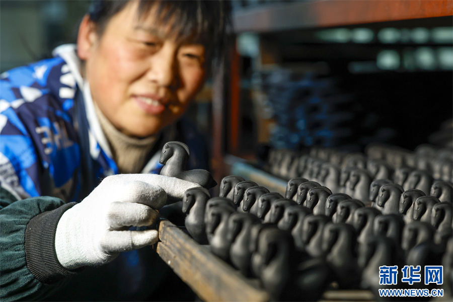 近日,在安徽省黄山市歙县老胡开文墨厂,制墨手艺人正在制作“立体唐马墨”。