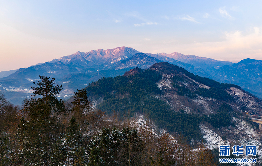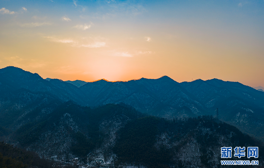 深冬时节,地处大别山腹地的安徽省六安市霍山县磨子潭镇,晨光掠过群峰,山脊勾上金边,疏林染透暖意,一幅静谧而磅礴的冬日画卷徐徐铺展。新华网发(徐程 摄)