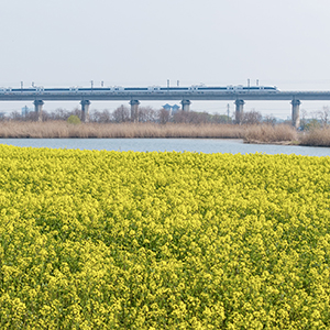 春日,在安徽省合肥市肥东县十八联圩生态湿地,油菜花竞相绽放,铺展成金色花海。高铁列车穿行其间,与碧水、飞鸟相映成趣,勾勒出一幅生动多彩的江淮大地春日图景。