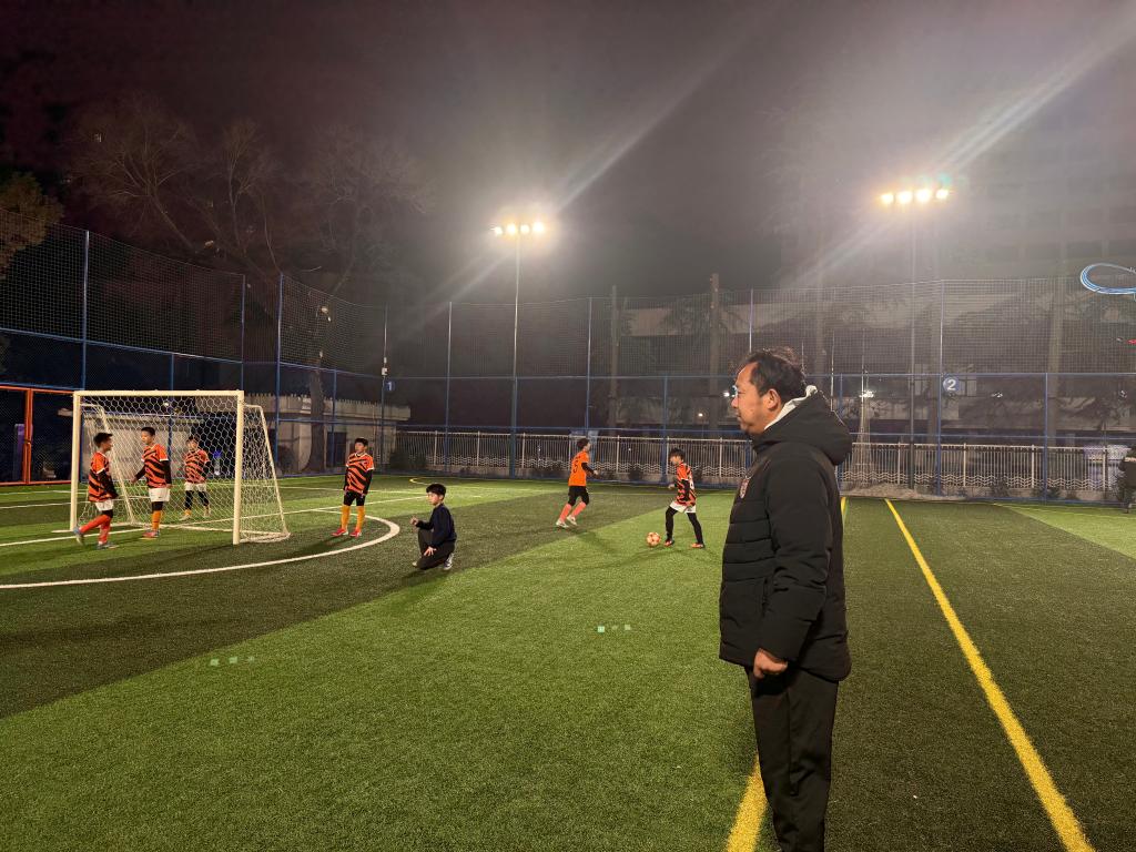 合肥的春夜,寒意还未完全褪去,暖黄色的灯光下,40多岁的詹可强站在场边,场上是一群十二三岁的小球员。