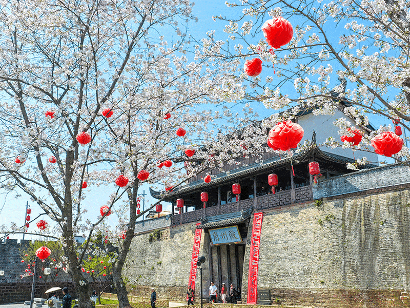 2026年3月29日,在安徽省黄山市歙县徽州古城拍摄的樱花。