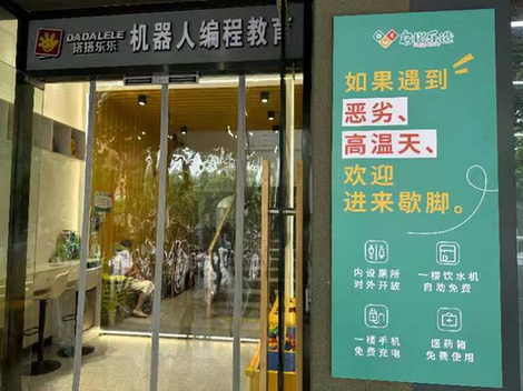 据了解,此间门面的一楼区域免费对所有人开放,附近的外卖员、环卫工人等户外劳动者是这里的“常客”。一名刚从店里补充饮用水的环卫工人说道:“这天气太热了,一天在外面坐着需要喝好几杯水,一下都带上又不方便,老板热情叫我进店里接水,特别谢谢他。”