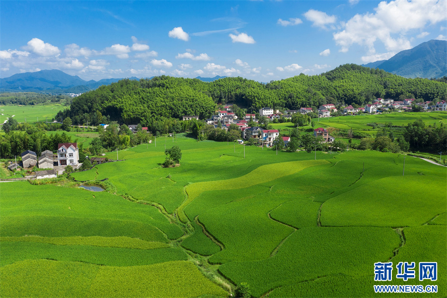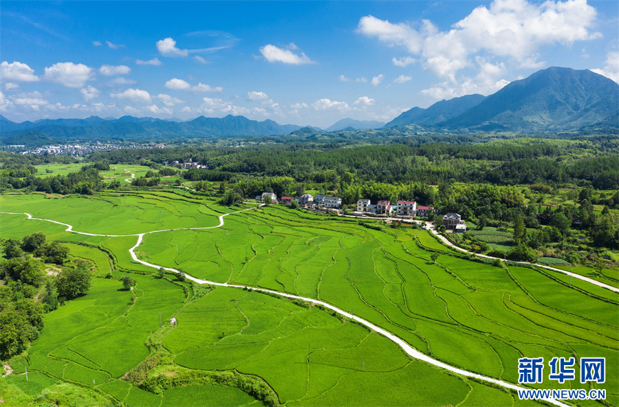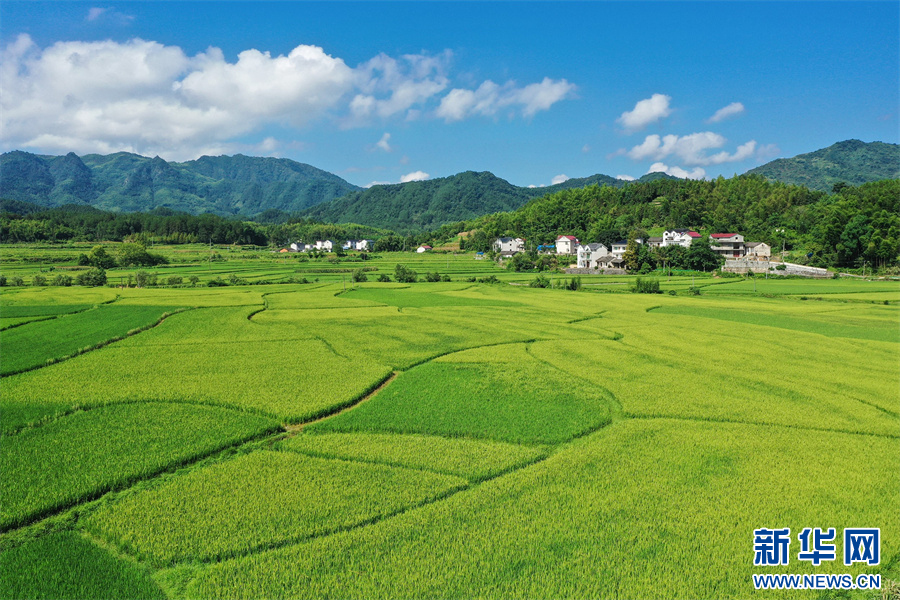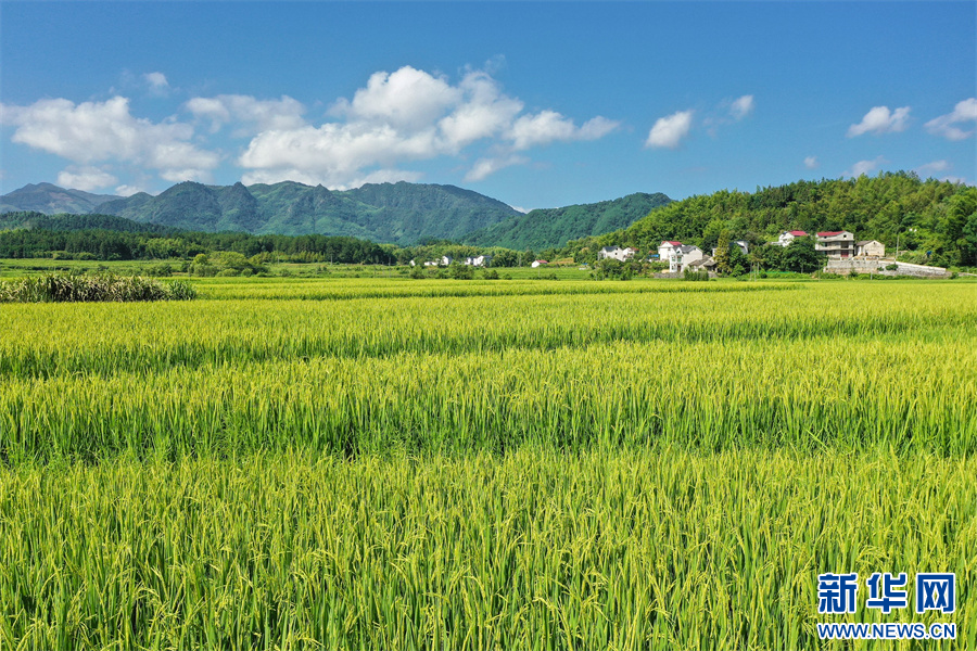 近日,安徽省宣城市旌德县白地镇的梯田里稻花飘香,丰收在望。