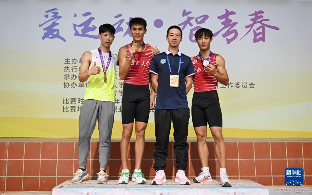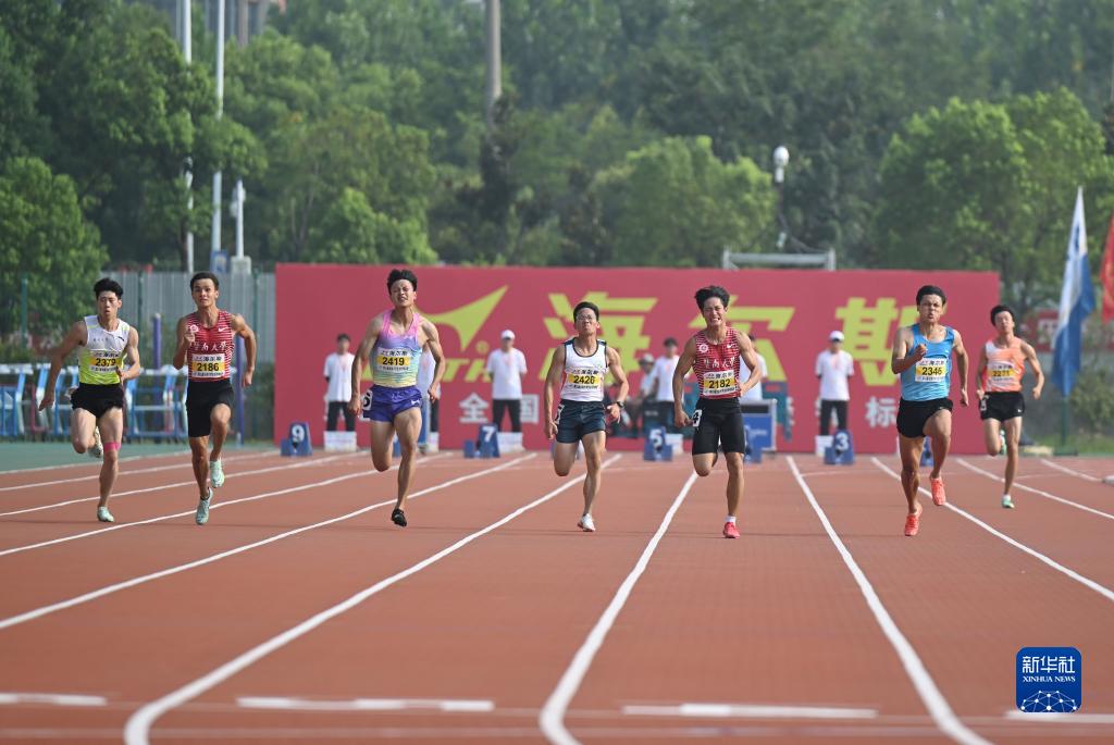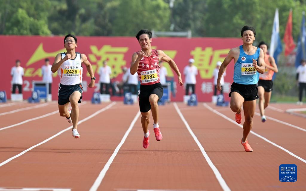 当日,在安徽合肥举行的第21届全国大学生田径锦标赛男子丁组100米决赛中,暨南大学选手严海滨以10秒40获得冠军,暨南大学选手邓信锐以10秒49获得亚军。