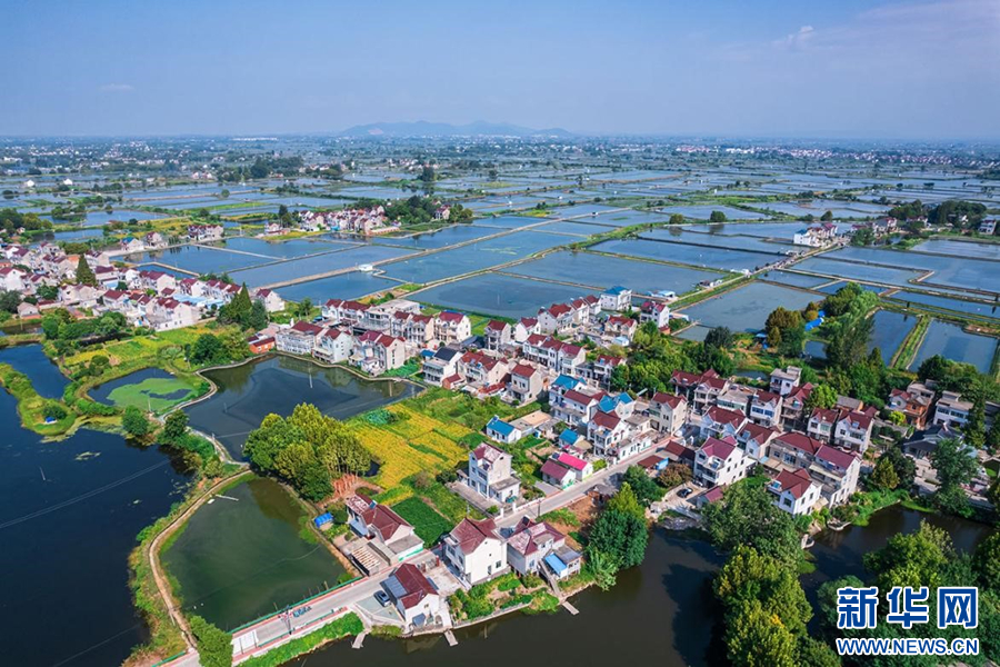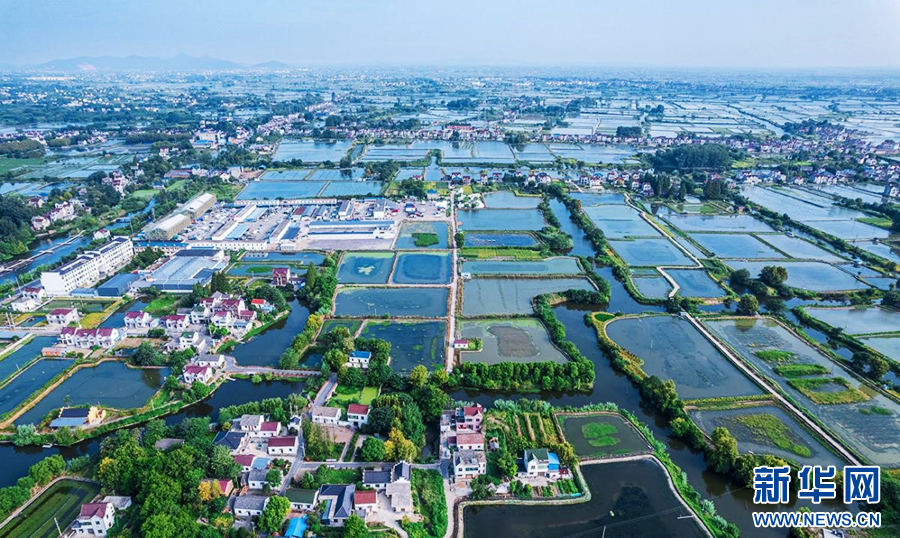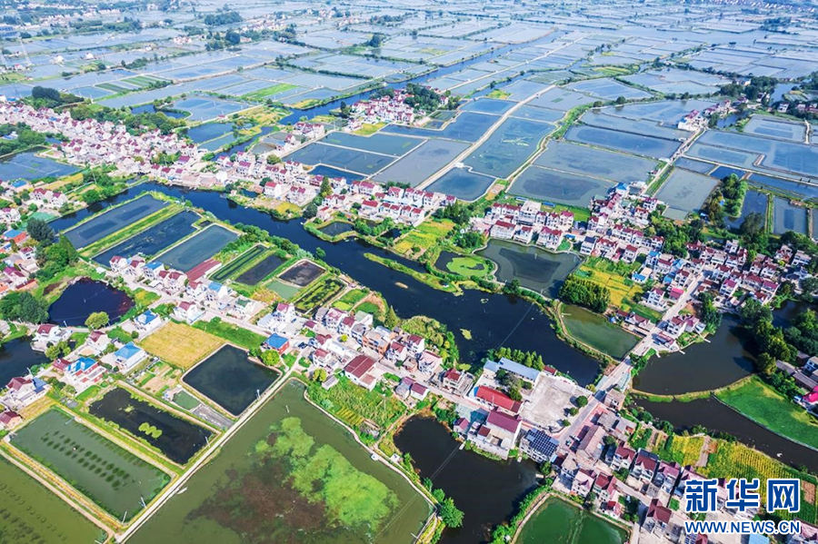 8月21日,航拍安徽省当涂县塘南镇,错落的民居、清澈的水田,与蓝天白云共同构成了一幅美丽的生态画卷。