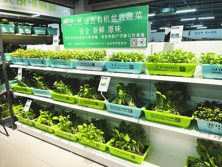 来自合肥的特色农产品吸引了众多市民的目光:刘一盆的盆栽蔬菜、青松食品的面食点心、王仁和的米线、同庆楼的预制菜在1楼大厅均有展台,部分商家还在现场烹饪熟食,前来咨询、购买、品尝的市民络绎不绝。