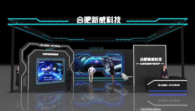 在合肥新威科技展区,采用沉浸式裸眼3D和主动式3D技术,通过映射畸变算法在多面屏主动光LED屏幕上呈现画面。画面清晰逼真,让人在体验时仿佛融入画面,达到人画合一的效果。