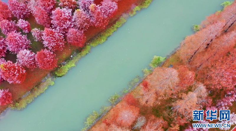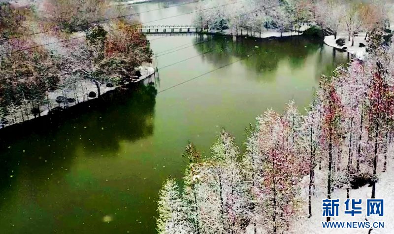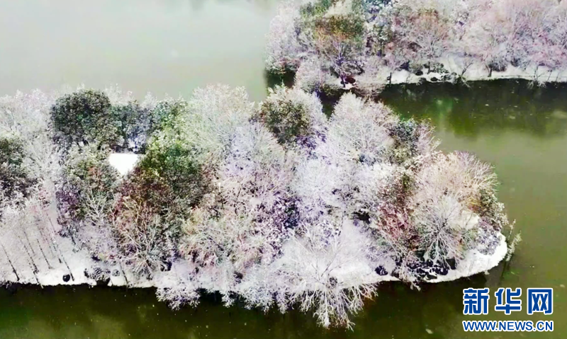 12月12日,雪后的安徽省颍上县银装素裹,分外妖娆。晶莹的雪花与五彩斑斓的湿地交相辉映,浪漫如诗,令人陶醉。新华网发(徐红梅 摄)