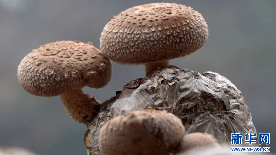 仲冬时节,安徽省宣城市旌德县俞村镇合锦村的香菇大棚里生机勃勃,根根菌棒整齐排列,朵朵香菇饱满“绽放”。