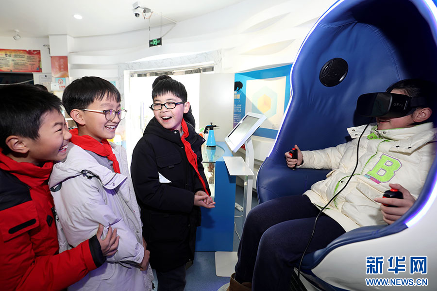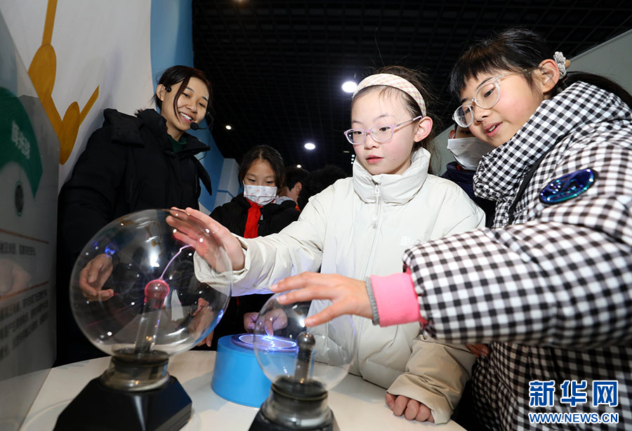 元旦假期,安徽省淮北市科技馆免费向群众开放,许多家长带着孩子来到科技馆参观体验,感受科技魅力,学习科技知识,丰富假期生活。新华网发(李鑫 张宇鹏 摄)
