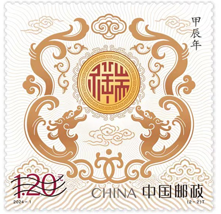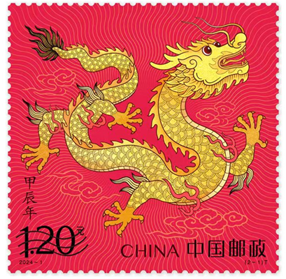 2024年《甲辰年》特种邮票,是中国生肖邮票第四轮中的第九套,邮票一套两枚,由著名邮票设计师王虎鸣设计,传承了生肖系列邮票的总体风格,取材扎实、立意吉祥。