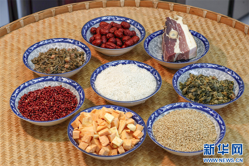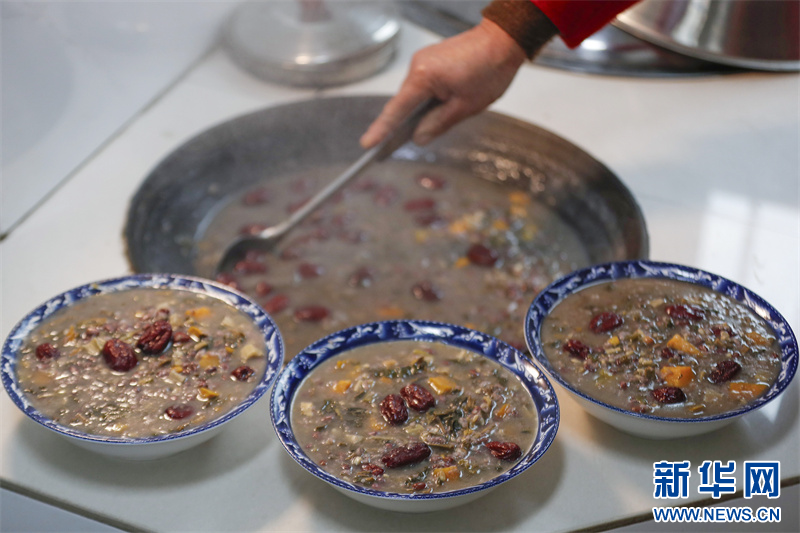 当日是农历“腊八节”,黄山市徽州区村民熬制具有当地特色的腊八粥。徽州腊八粥由干豆角、红薯、红豆、红枣和火腿肉等8样绿色纯天然食材熬制而成,口感香滑厚稠。新华网发(施亚磊 摄)