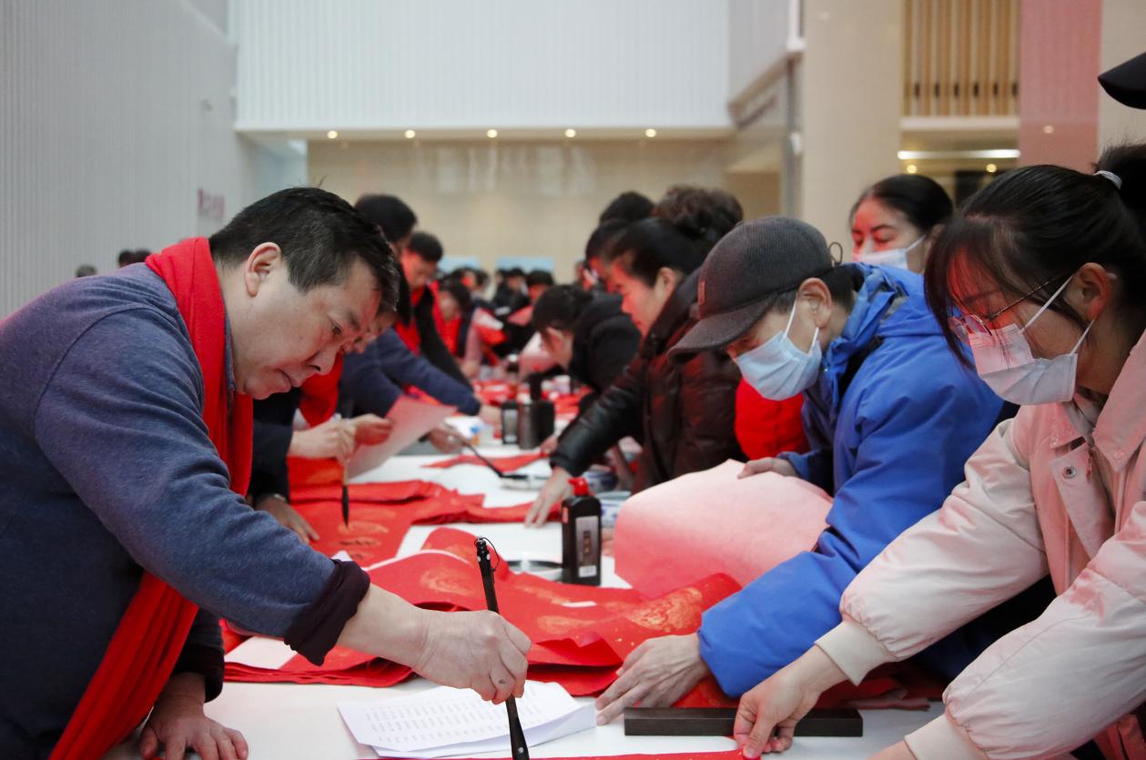 活动现场,翰墨飘香、气氛热烈,处处洋溢着温馨欢乐的气氛。书法家们挥毫泼墨,为来到现场的职工群众书写春联和“福”字,将节日的祝福与浓浓的年味送到职工群众身边。免费理发、修理小家电、皮具护理、衣服整烫、义诊、法律咨询等各具特色的志愿服务摊位依次排开,引得人头攒动、暖意融融,一片热闹景象。
