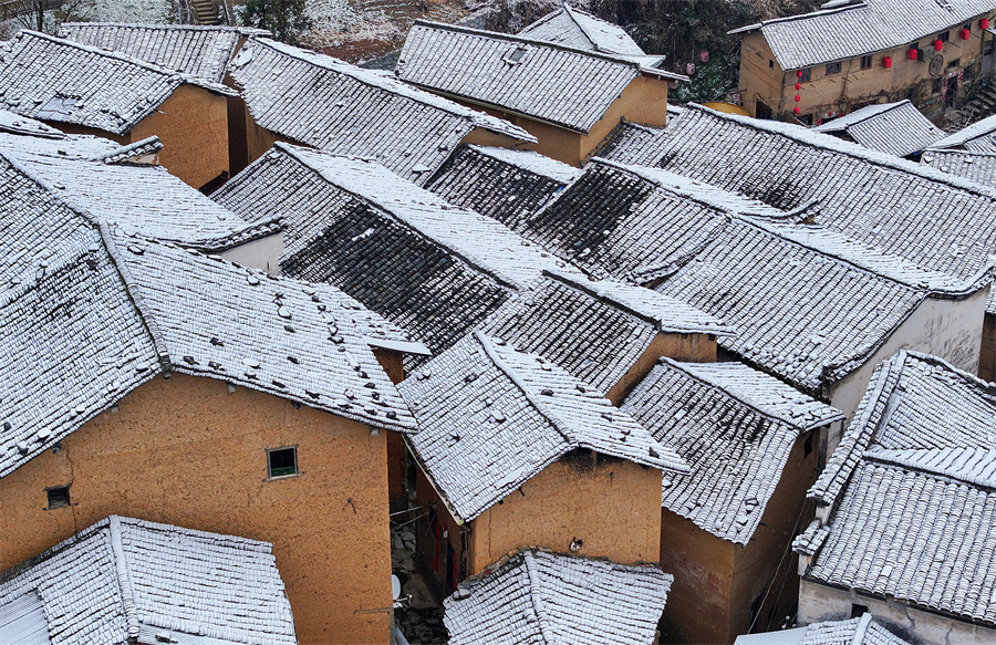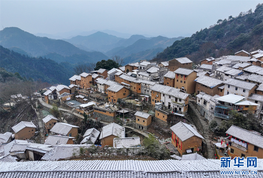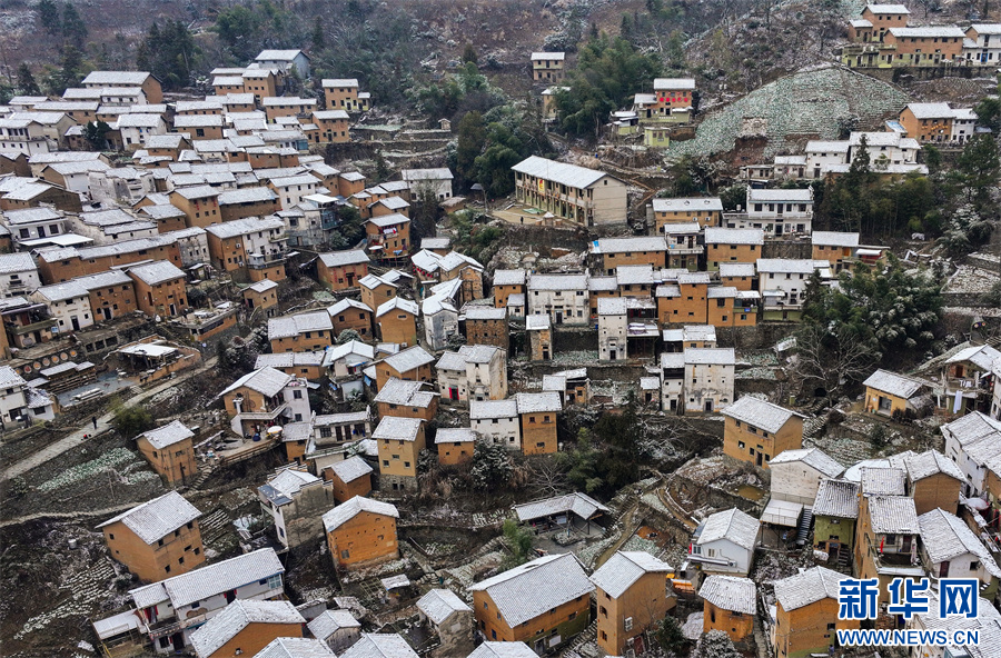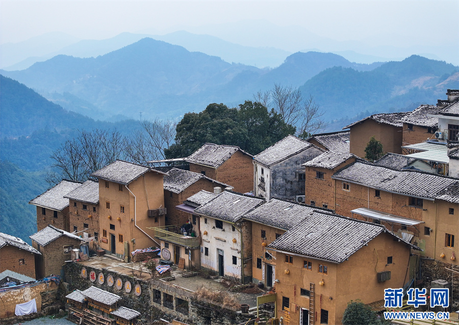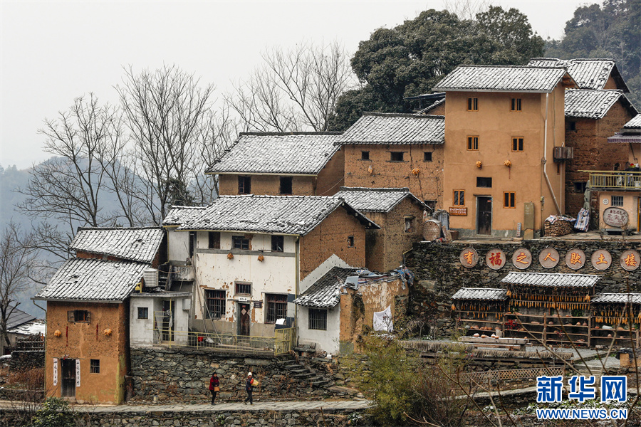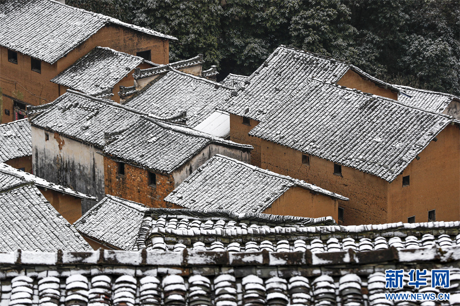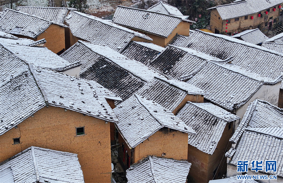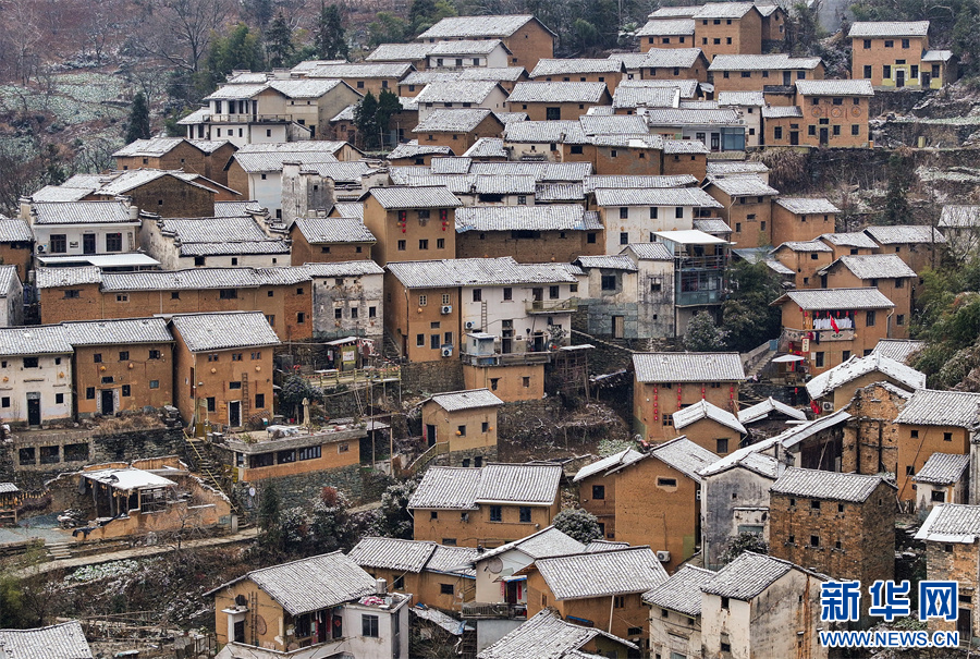 当日,受寒潮影响,安徽省黄山市歙县深渡镇阳产村迎来新年首场降雪,依山而筑的徽州土楼与皑皑白雪交相辉映,质朴壮观,分外妖娆。新华网发(施亚磊 摄)