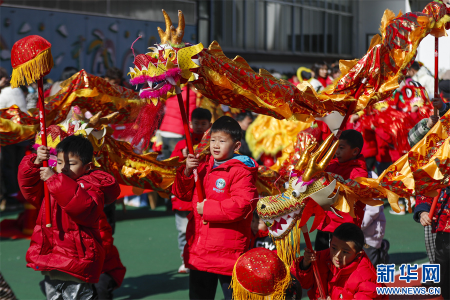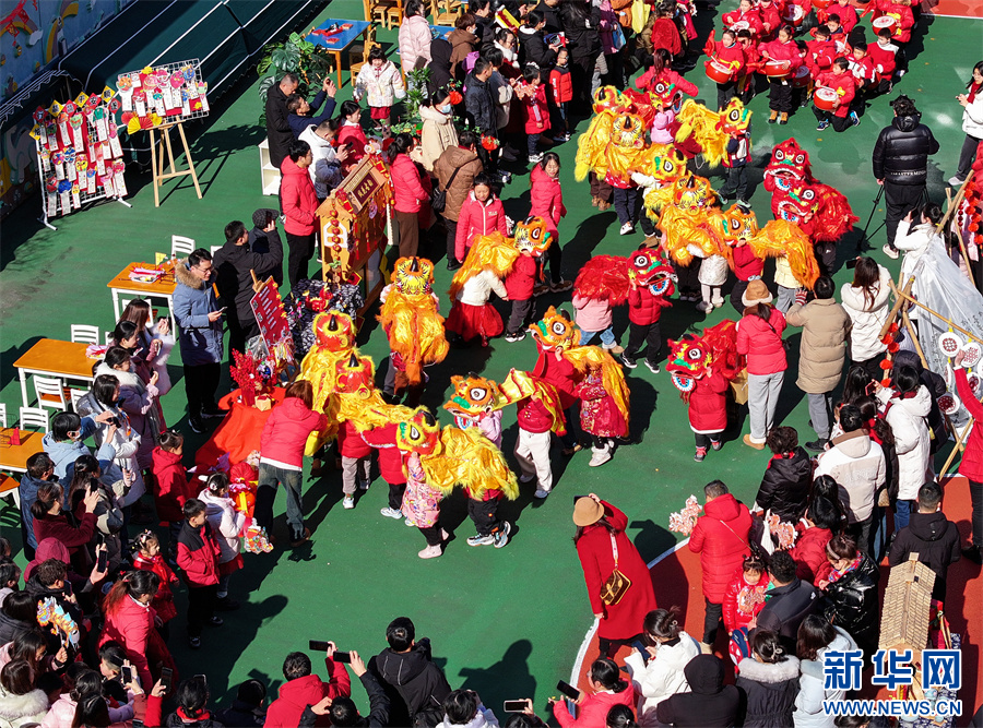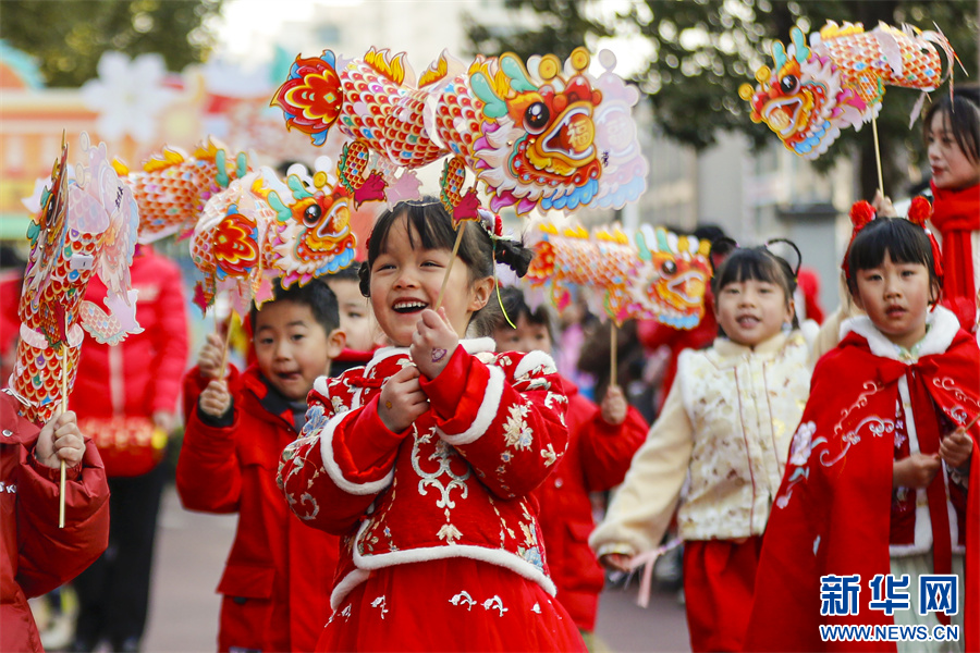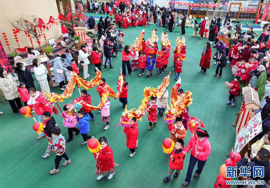 当日,一场妙趣横生的“萌娃踩街迎新春”活动在安徽省黄山市屯溪示范幼儿园举行,小朋友们穿上喜庆服饰,表演各类民俗踩街,感受传统文化的魅力,迎接龙年新春的到来。 新华网发(施亚磊 摄)