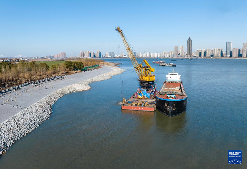 这是2024年1月23日在安徽省芜湖市鸠江区拍摄的长江芜湖河段整治工程建设工地现场(无人机照片)。