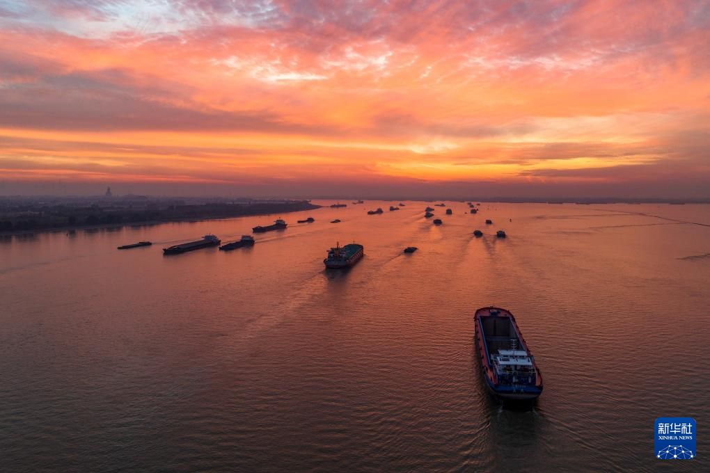 这是2023年12月5日拍摄的长江芜湖段风景(无人机照片)。新华社发(肖本祥 摄)