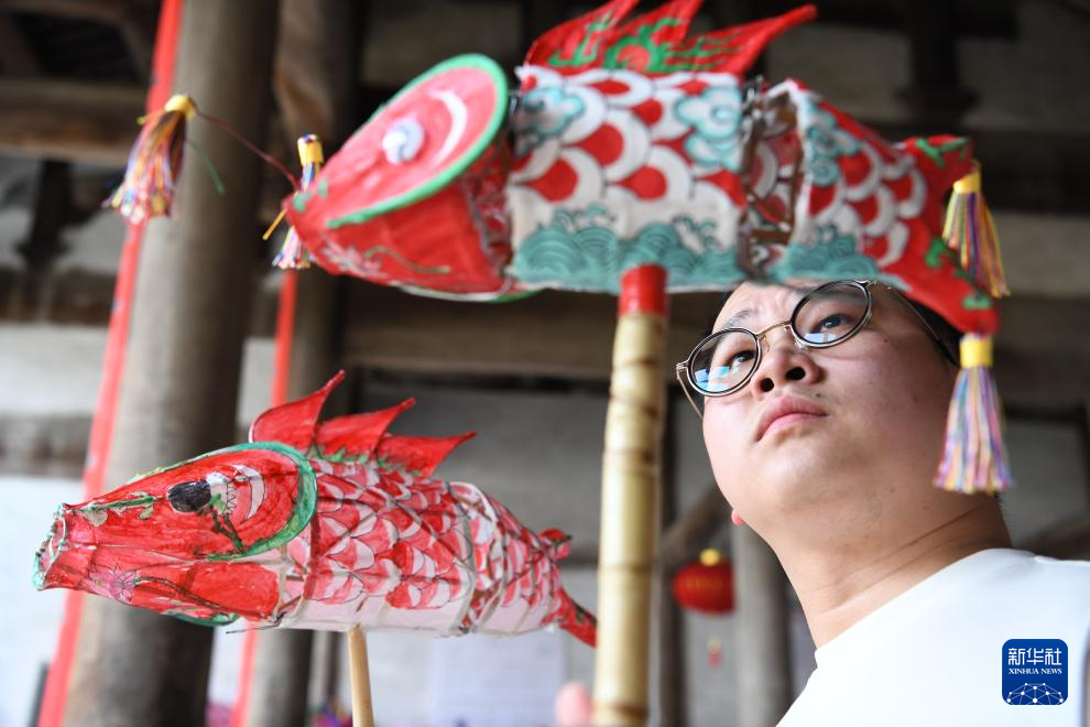 出生于1996年的汪宇昉是瞻淇鱼灯非遗传承人,从12岁起,他便跟着当地村民学习鱼灯制作技艺。如今,汪宇昉成立了以鱼灯销售和展演为主要业务的公司,他希望把鱼灯制作技艺传承下去的同时,开发鱼灯相关的文创产品,打造鱼灯文化名片。