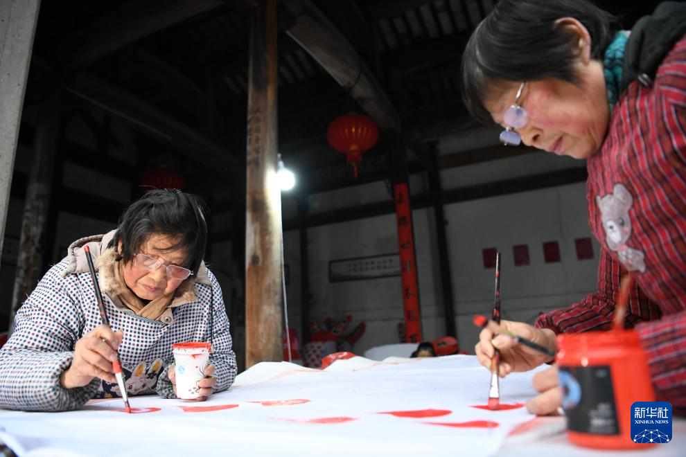 2024年2月4日,在安徽省黄山市歙县瞻淇村,村里的老人在制作鱼灯。新华社记者 张端 摄