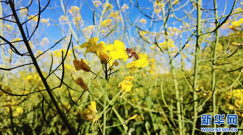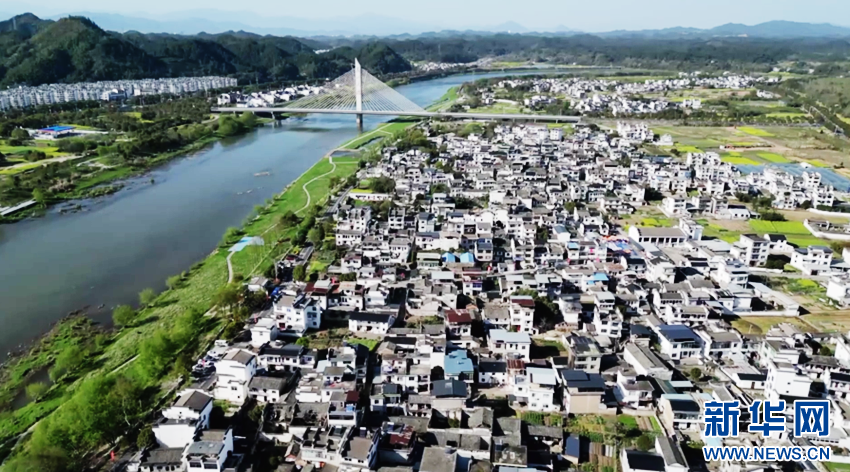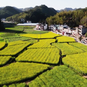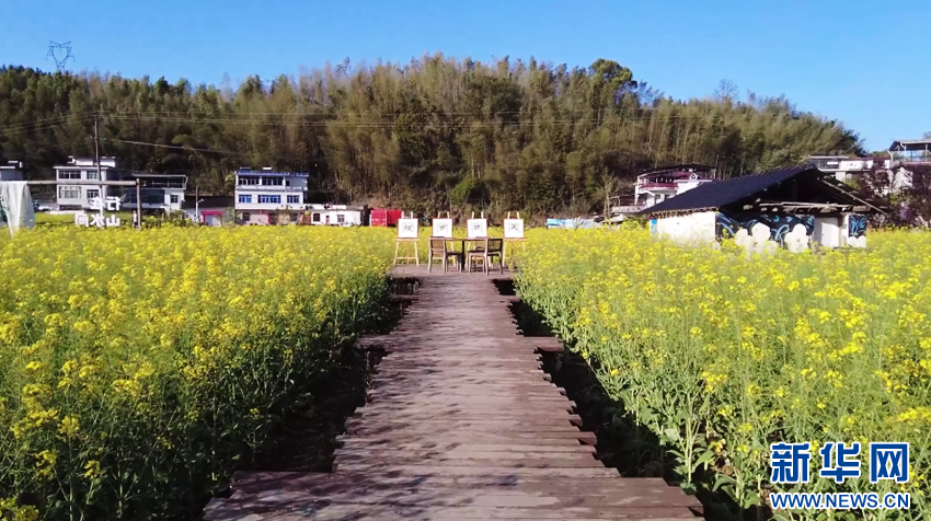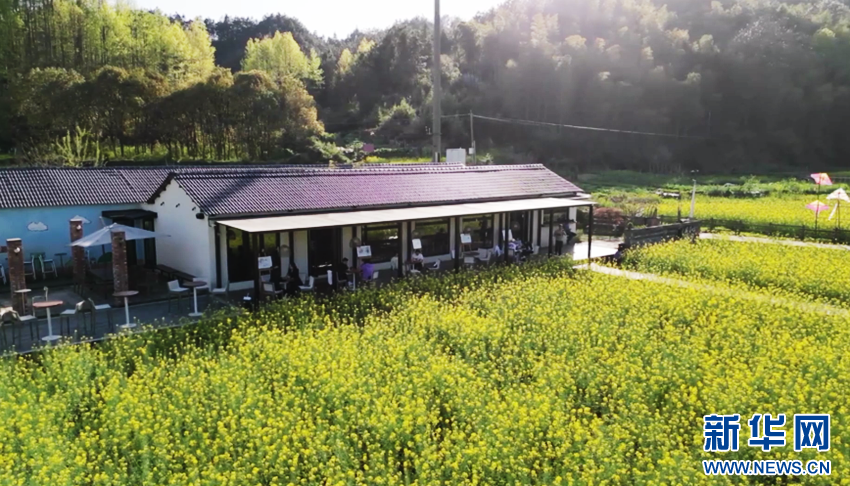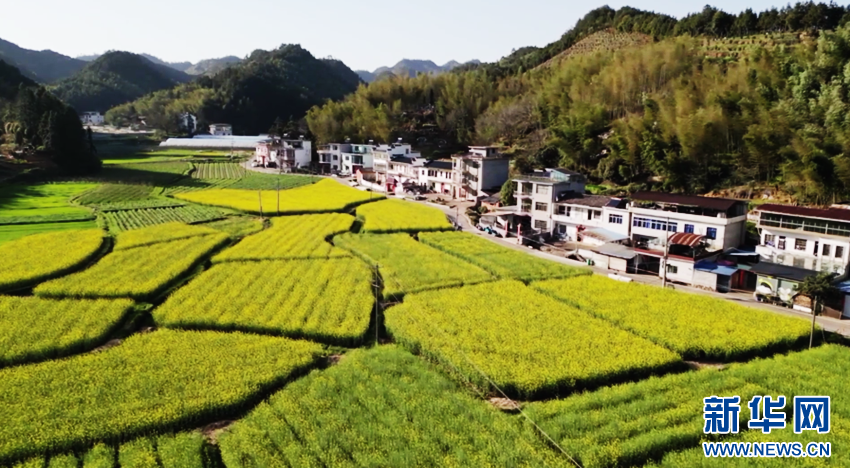 近日,在安徽省黄山市屯溪区屯光镇,连片的油菜花迎春盛开,与皖南民居相互掩映,构成如画美景。