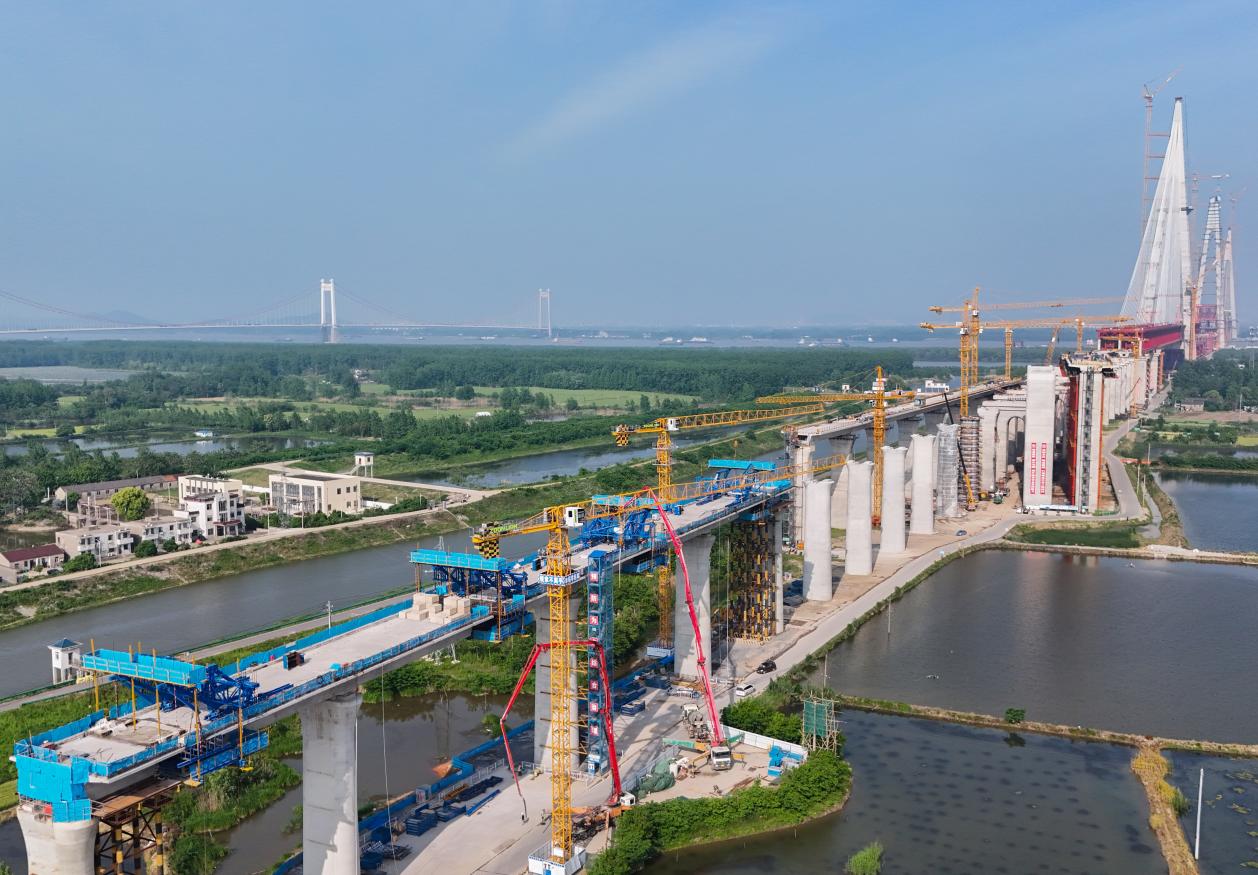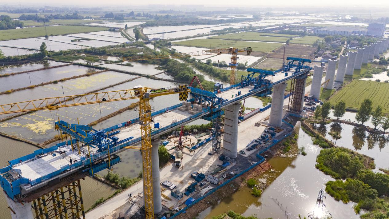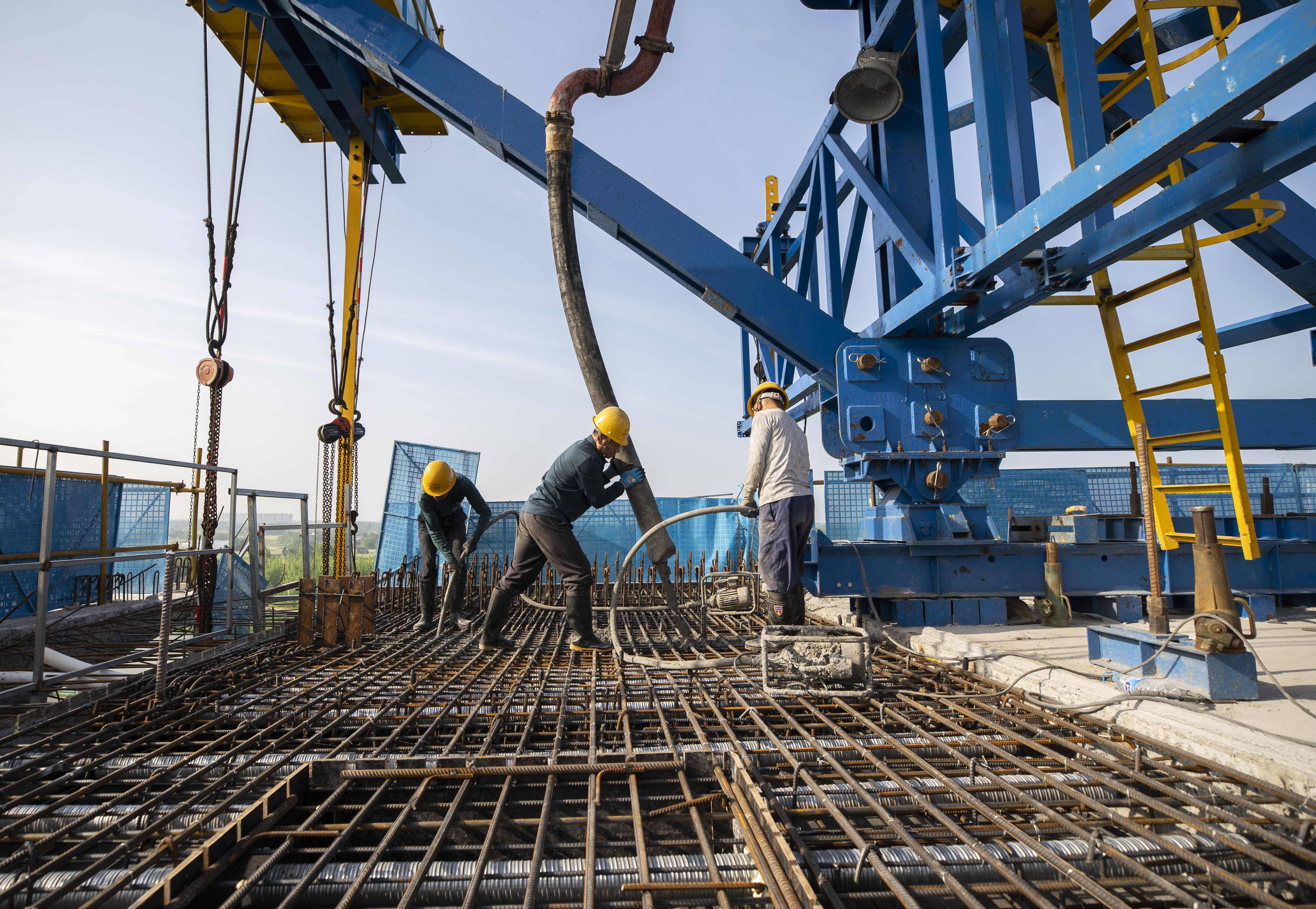 4月27日,位于安徽省马鞍山郑蒲港的巢马城际铁路五标施工现场,建设者抢抓工期,全力以赴按预定时间节点加快推进。目前该标段正进入连续梁合龙段施工。
