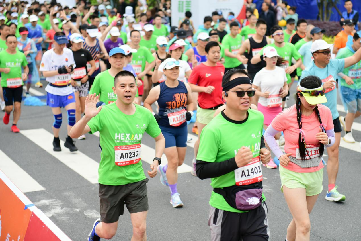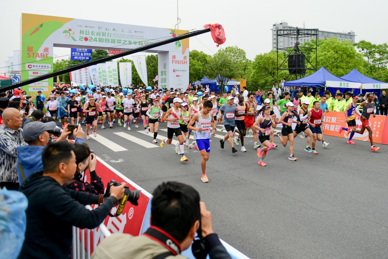 以“飞驰蔬乡,跃动和州”为主题的和县农商银行2024和县蔬菜之乡半程马拉松赛5月4日上午在县政府南广场鸣枪开赛,本届赛事由和县人民政府、马鞍山市体育局主办,和县文化旅游体育局、安徽和州文化旅游集团有限公司承办。有3000名选手参赛。(常兴胜/文 秦祖泉/摄)