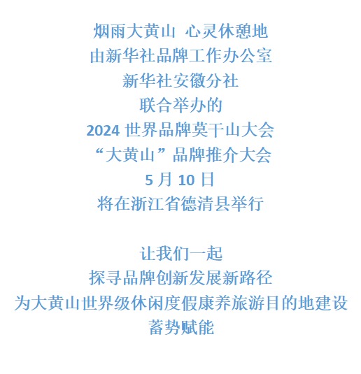 海报|倒计时2天!2024世界品牌莫干山大会“大黄山”品牌推介大会将启幕-新华网