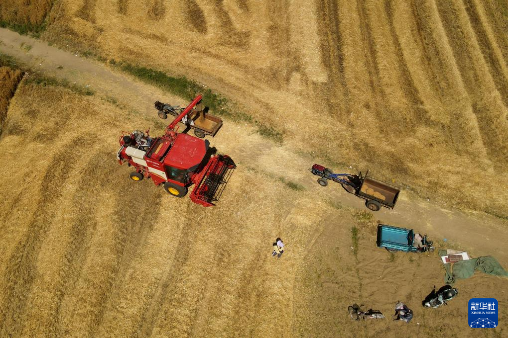 三夏时节,在淮河沿岸的安徽省蚌埠市五河县,110余万亩小麦陆续成熟,当地农民抢抓晴好天气收割小麦,田间地头一派繁忙景象。据了解,五河县共投入各类收割机3000余台,拖拉机、打捆机、烘干机等配套农机具近5000台,同时成立农机维修服务队,保障夏收工作安全高效开展。