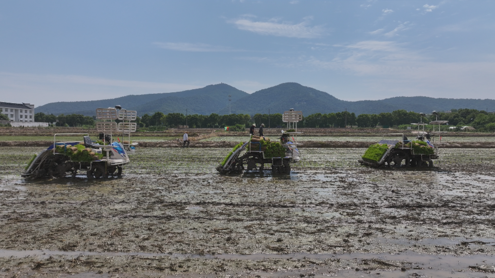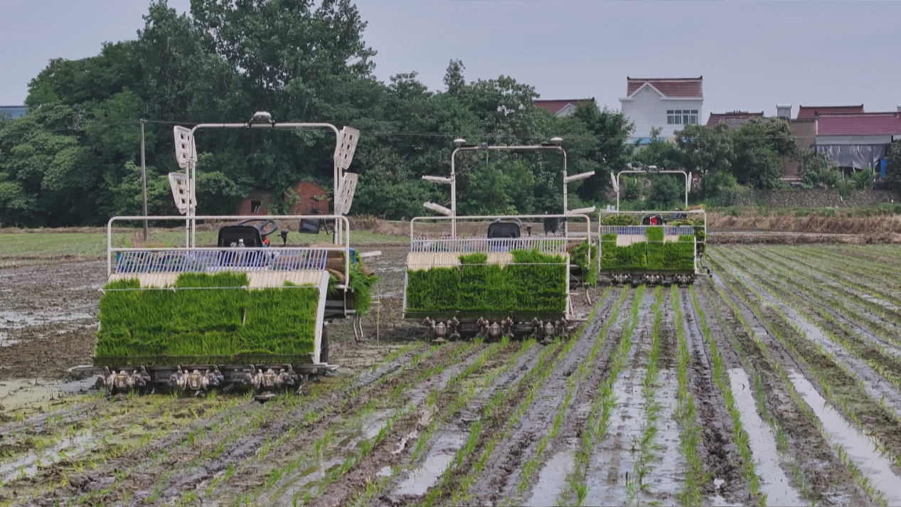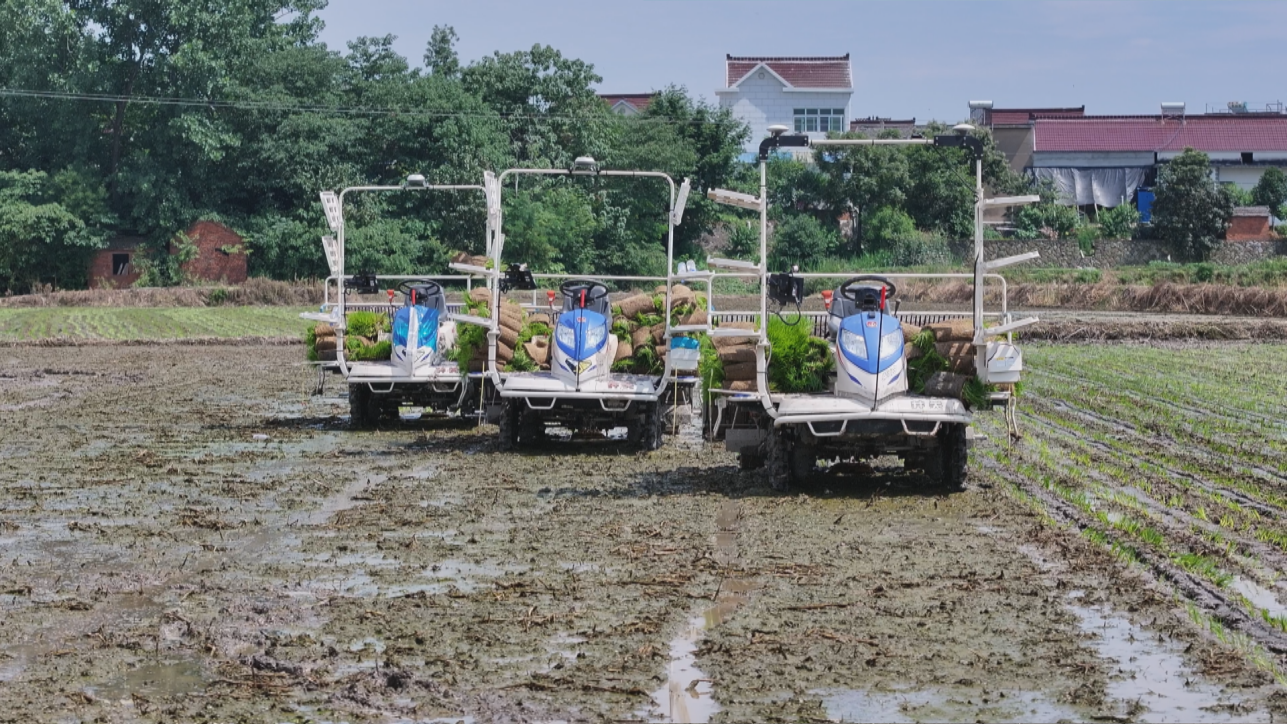夏收不松劲,夏种紧跟进。眼下,正是水稻栽插的关键时节,在当涂县玉平水稻种植家庭农场,种粮大户李玉平从合作社调来了五台无人驾驶高速插秧机。