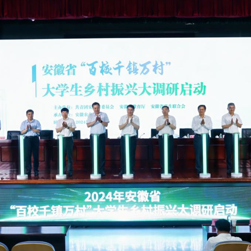 7月9日,安徽省“百校千镇万村”大学生乡村振兴大调研启动仪式在安徽农业大学举行。本次活动旨在为引领大学生将课堂学习与乡村实践紧密结合,进一步了解安徽省“千亿斤江淮粮仓”建设、农业科技创新、乡村富民产业、乡村治理等工作现状,在乡村振兴一线发现真问题、提出真答案、锻炼真本领、提升真能力。