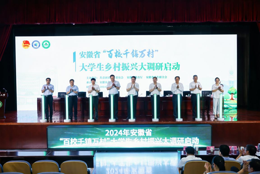 共青团安徽省委书记陈明生在讲话时表示,此次安徽省“百校千镇万村”大学生乡村振兴大调研活动,是积极响应省委省政府关于深入实施“千村引领、万村升级”工程、多方联动持续完善乡村振兴人才培育机制的创新之策。各级团学组织要充分利用此次大调研契机,统筹推进大学生暑期“三下乡”社会实践、共青团促进大学生就业行动,巩固和拓展校地合作成果,创新出台支持大学生来皖留皖的政策举措,完善大学生“引育留用”机制,为全面建设现代化美好安徽提供强劲动能。
