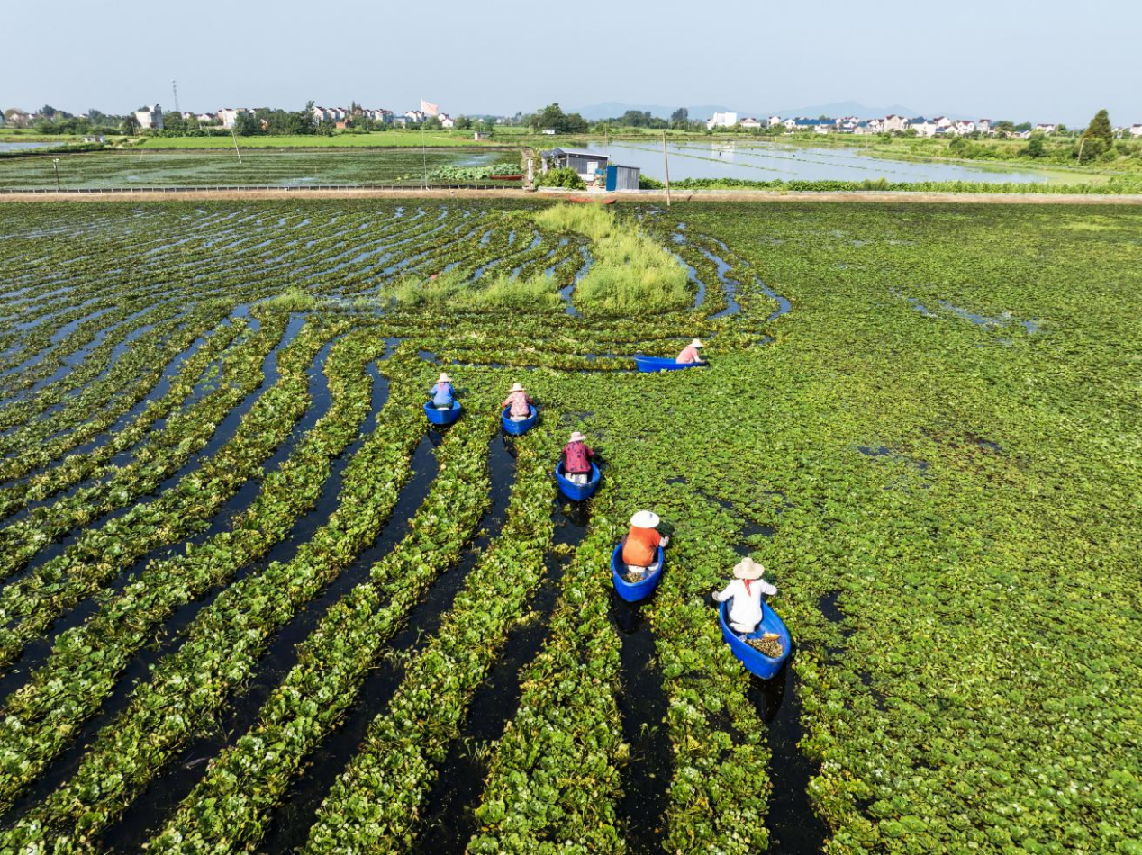 时下,当涂县“错季”菱角迎来大面积收获,种植户们忙着采摘、分拣、销售菱角,处处呈现一派繁忙的丰收景象。