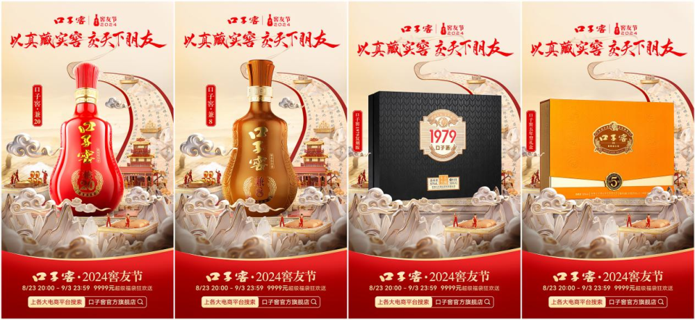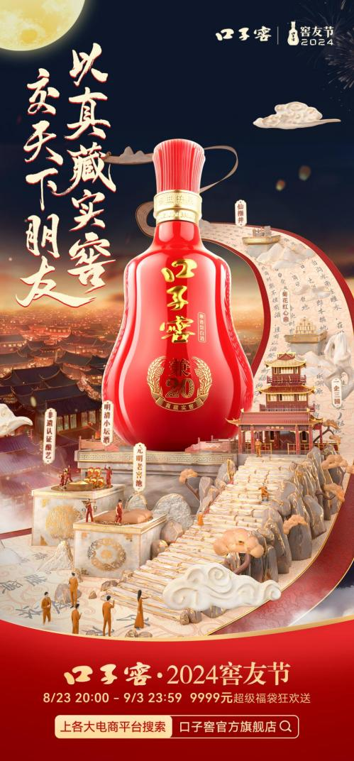 口子窖精心布局C端用户营销,自造IP节点,在2023年举办首届窖友节。今年的窖友节活动时间为8月23日至9月3日,推出口子窖·兼20、口子窖·兼8和中秋礼盒等重磅产品,更有9999元超级福袋狂欢抽、兼香之夜群星演唱会门票火热赠、定制“葫芦福禄礼”等多重福利,回馈窖友。除了以上多重福利外,本次窖友节还在京东官方旗舰店发起了口子窖“醉美窖友品鉴官”全网征集,以酒会友,相聚窖友。