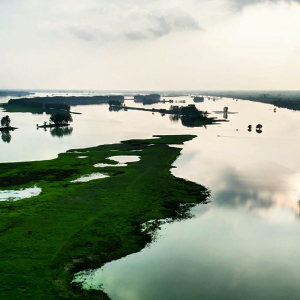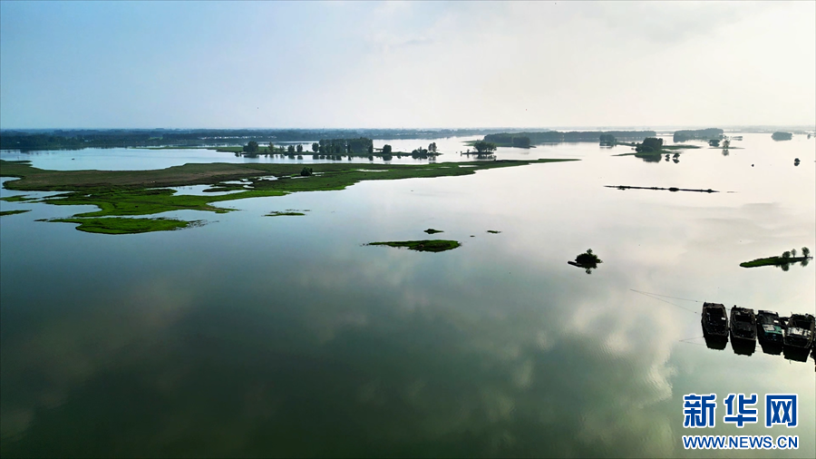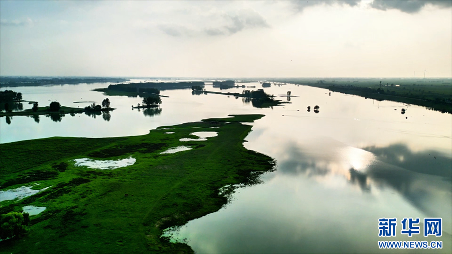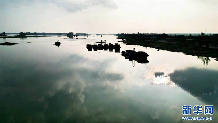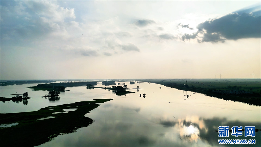 初秋时节,在安徽省颍上县淮河邱家湖段,夕阳、水面、河滩相映成趣,勾勒出一幅幅美妙的水墨画卷。
