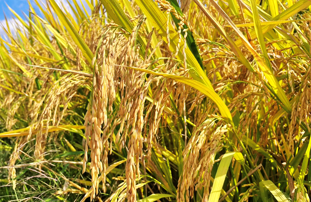 望着金黄色的稻田,吴兴贵喜笑颜开地说道:“我今年种植了200多亩中稻,主打珠两优1466品种。该品种具有较强的抗倒伏能力,稳产性好,对多种病虫害具有较高的抵抗力,农药使用少,是一个环保友好的水稻品种。”“珠两优1466不仅产量高,抗逆性强,而且米质优良,是一个综合表现突出的水稻品种,适合大面积推广种植。”昌桥乡农综站站长吴国民表示。