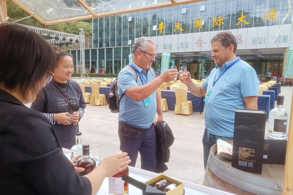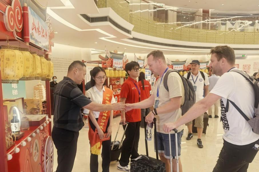 在选手入住的宣城市一酒店门前,云岭锅巴、野生蜂蜜等8家当地特色农产品企业参加宣城市农产品展销,泾县油布伞、宣纸折扇等非遗展品让中外选手们流连忘返。新华社客户端发