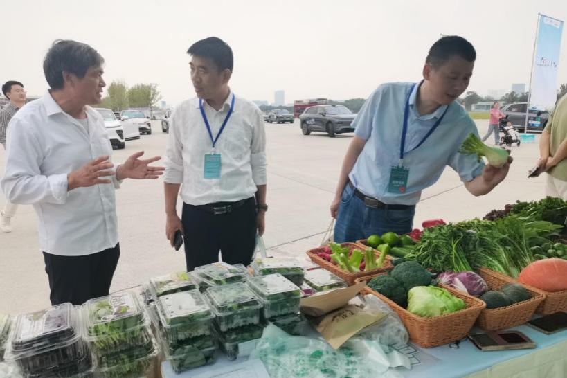 在赛事发车仪式举办地——骆岗公园,开展了“合肥名特优农产品”展示展销宣传推广活动,参展展品达上百种,产品琳琅满目、物美价廉。新华社客户端发