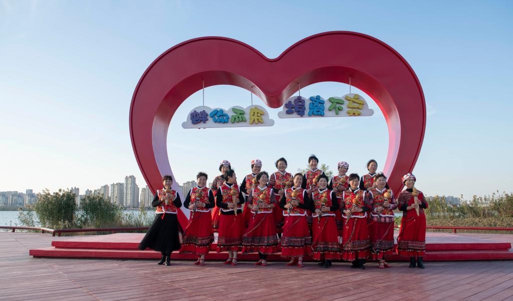 11月8日,市民在安徽省蚌埠市龙子湖风景区列队准备表演。