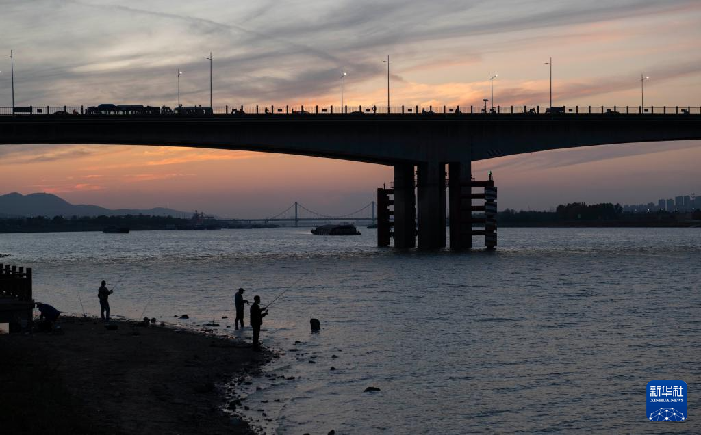 11月8日,市民在淮河安徽蚌埠段岸边垂钓。