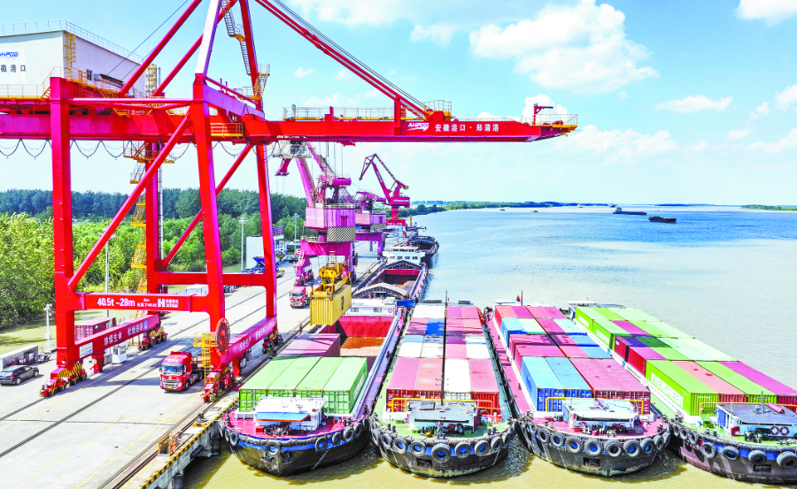 今年以来,郑蒲港新区充分发挥其在长江经济带的区位优势,通过优化机构设置、改进服务质量和提升整体效能等措施,锚定“大港口、大物流、大外贸”持续发力,“区港联动”和“铁水联运”模式成效初显,正朝着打造安徽江海联运枢纽中心的目标迈进。